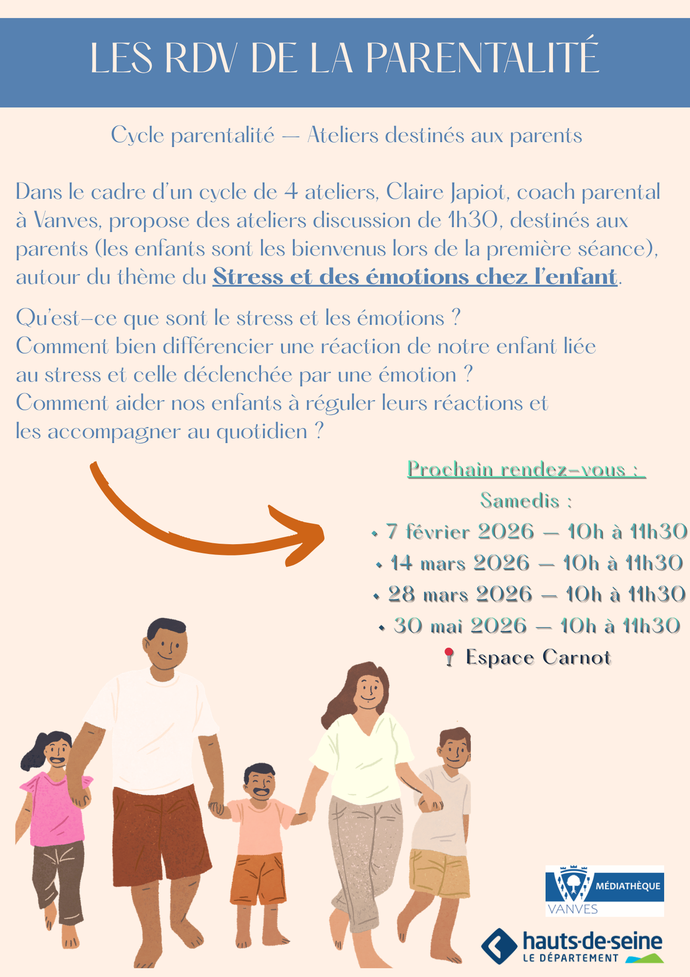 Cycle parentalité – Ateliers destinés aux parents Dans le cadre d’ un cycle de 4 ateliers, Claire Japiot, coach parental à Vanves, propose des...